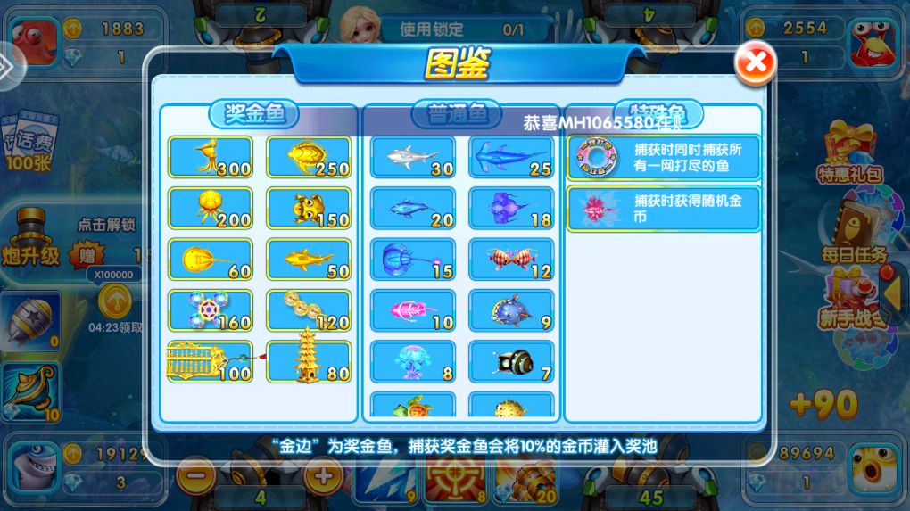 S级炮台系统:早期版本已推出S级炮台,凭借超炫的画面表现和专属技能,提升捕鱼效率与命中率,成为玩家提升捕鱼能力的核心道具。