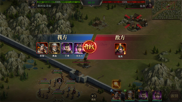 任命武将出征、参与战斗,不同武将能力影响战斗效果。