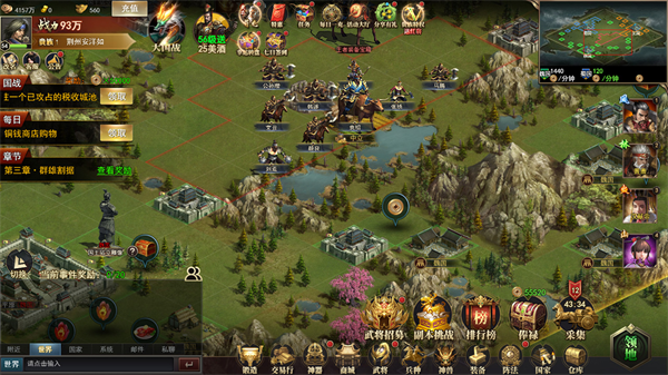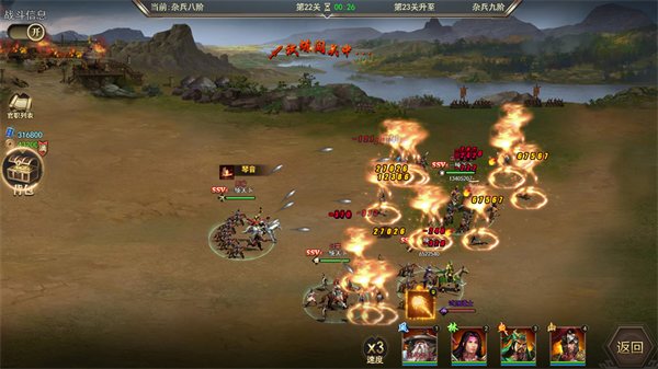 武将通过战斗获得经验升级,装备强化,提高整体实力。