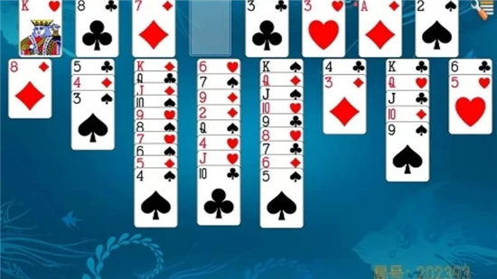 2.牌叠放在玩牌区左上角,要想赢得一局,必须按降序从 K 到 A 排列纸牌,将所有纸牌从玩牌区移走。