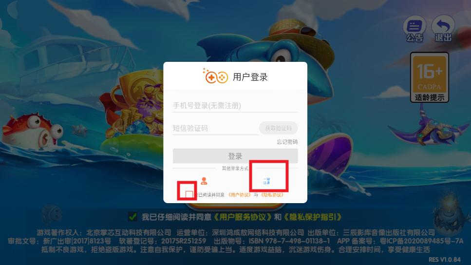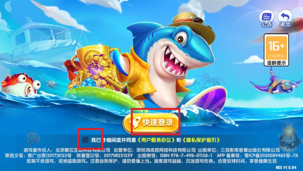 勾选相应协议,点击快速登陆