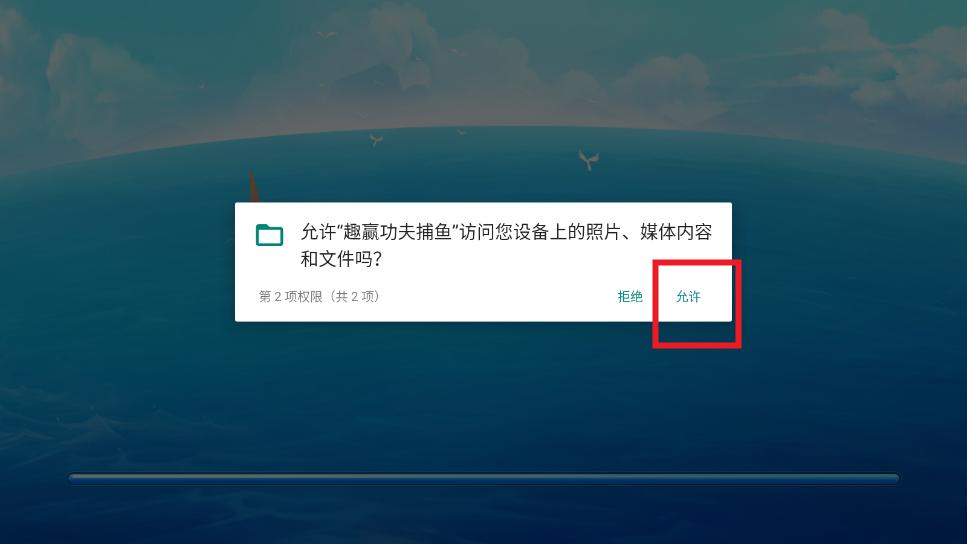 打开趣赢功夫捕鱼,点击允许权限
