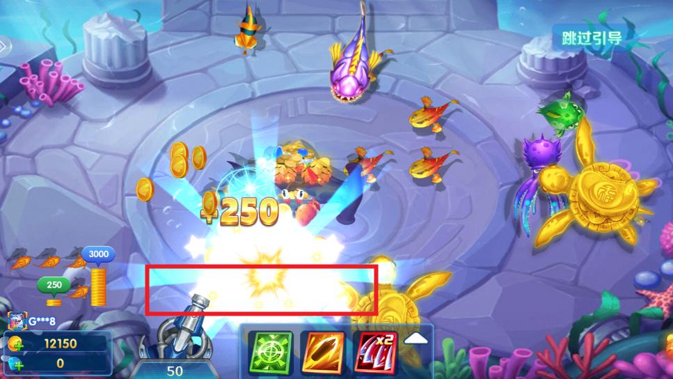 3.各式各样的武功招式在海洋深处的美丽场景中捕获大鱼,万炮捕鱼,超高倍率。