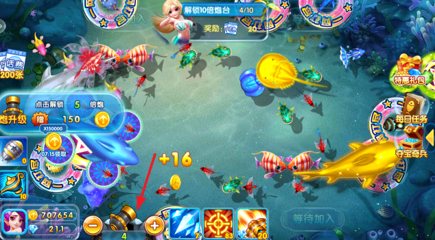 3.每日签到都会有上百金币送不停,内设的10倍,百倍以及千倍炮让你一刻也不能放松。