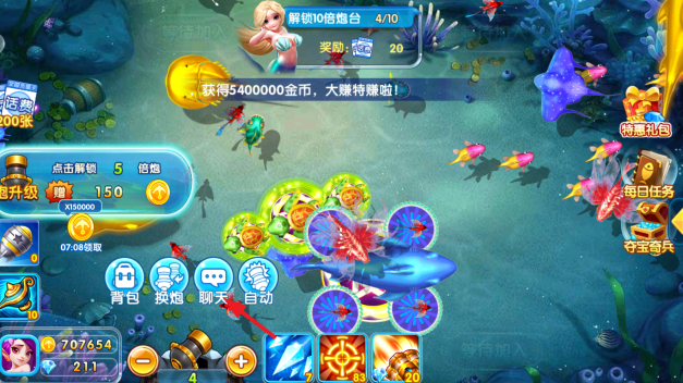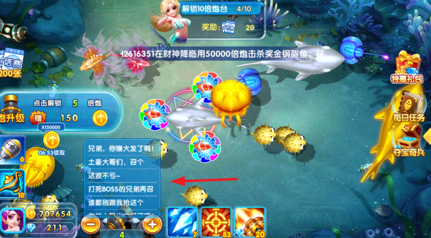 3.有趣的联机捕鱼手游,突破经典街机更酷炫,震撼壮观,等您挑战。