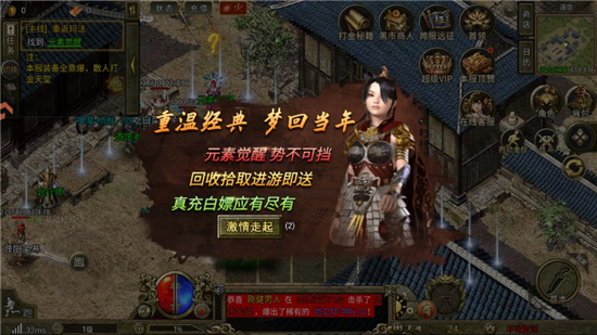 (1)建议激活至尊赞助特权,直接获得绝版斩杀神兵、终生每日返利30万传奇币还能直升18转,获得海量元宝经验,打怪速度加倍提升!
