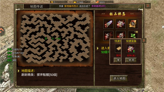 (1)装备:本服所有装备都可爆!所有地图免费进!地图越高级,怪物爆率也越高!每一张新图都会解锁更nb更高级的新装备!