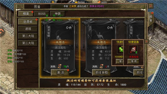 (3)图鉴:打怪必掉图鉴,收集后可激活对应怪物的图鉴,白嫖大量属性!