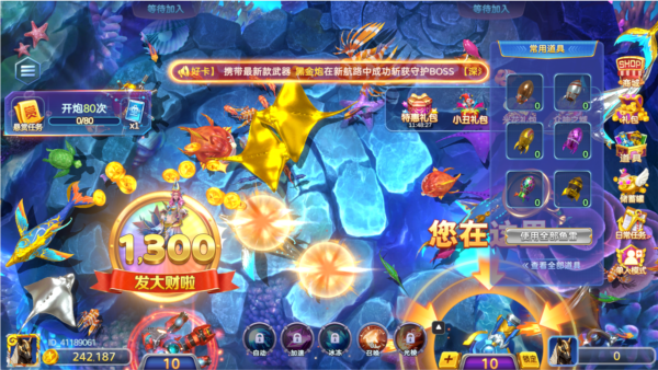 1、《捕鱼大明星》提供了多种功能强大的捕鱼道具,以帮助玩家更轻松地捕捉鱼类,获得更高的收益。常见的道具包括:
