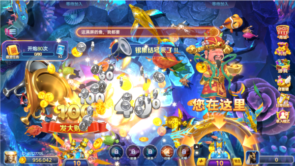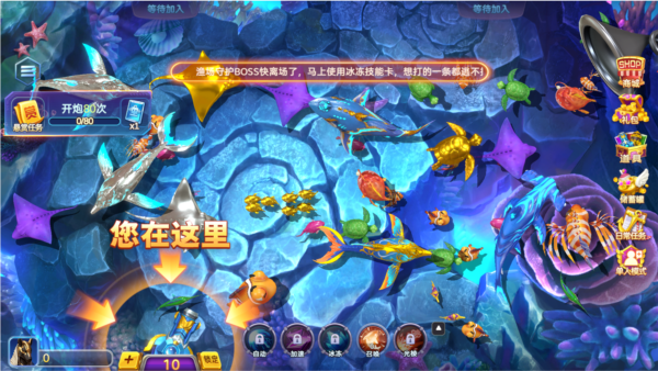 3、冰冻: 冰冻全场鱼类,使其减速或停止移动,方便玩家集中火力捕捉。