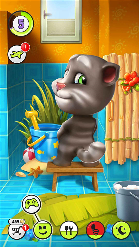 1.虚拟宠物养成:玩家可以照顾汤姆猫的日常生活,喂食、洗澡、睡觉等。