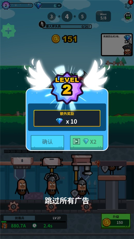 使用工厂生产的英雄击杀怪物吧。用挣来的金币升级工厂,快速的让更强大的英雄参展吧。