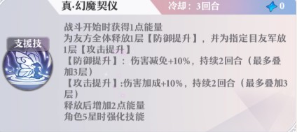 支援位:比较随意,以凑元素为主。比较好用的是3暗+3火组合。顺便列一下好用的支援技,都是不需要练度,扔到支援位就能用的,大家可以根据需求灵活取用。