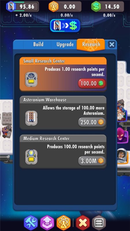 围绕建设小行星的新建筑,升级你的太空殖民地,并继续挖掘飞船。