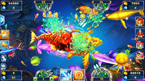 捕鱼大作战赚金版本客户端是一款掌上休闲捕鱼游戏,玩家可不断体验多种炮台模式,明星代言,商城道具众多,玩家可以氪金消费也可以凭实力只有畅玩,全看你自己的喜好!