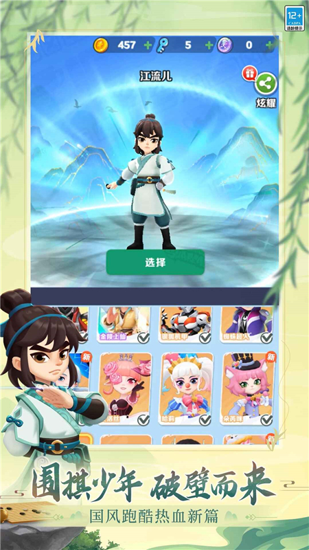 江流儿身着青白长衫,发带飘扬,似从千年棋局中走来的少年弈者,在疾驰中落子无悔,以沉静智慧引领赛道哲思;