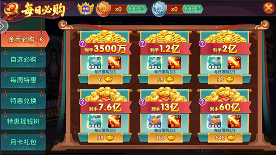 3.购买高级财礼包可以增加摇钱树基础金币。