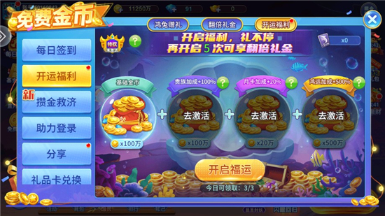 3、每领取5次开运福利,可开启一次翻倍礼金