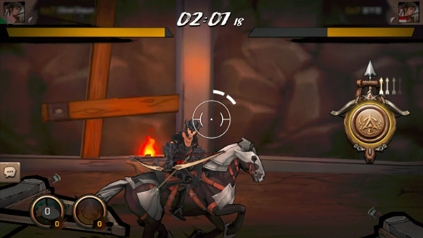 游戏的主要玩法就是骑在移动的马上,射中对方,将对方血量打完就算胜利。说起来简单,但实际玩时,这种瞄准时令人紧张窒息的感觉非常突出!