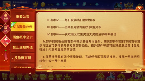 c.每个赛段的最后7天为【混元归墟】阶段,渔场内会随机刷新特殊鱼【