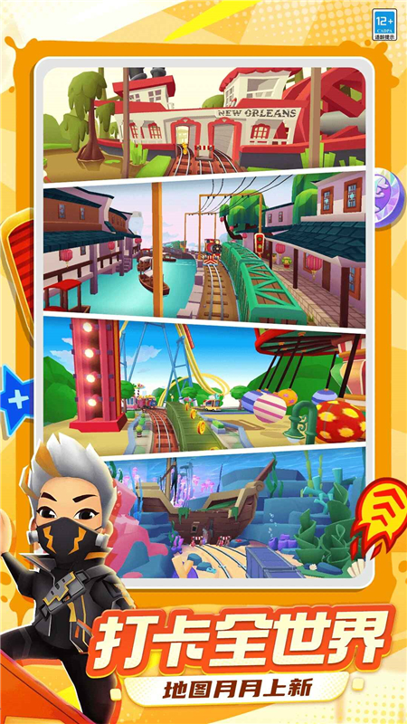 6.分数争霸赛:无尽模式分别达到规定的分数时可获得道具福利,排名前10名即可获得领地铁跑酷实体周边