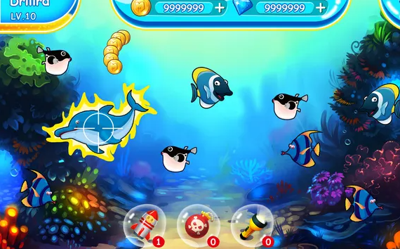 1、操作方式:玩家通过触摸屏幕来控制瞄准和射击,将子弹发射到鱼群中捕捉鱼类。根据不同鱼类的大小和稀有度,捕捉到的鱼会有不同的价值和奖励。