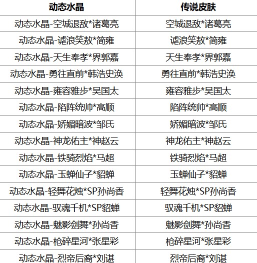 活动期间,每消耗动态碎片*30可兑换动态水晶*1,动态水晶*1可兑换传说动态水晶;每消耗朱砂*600,可兑换传说皮肤。