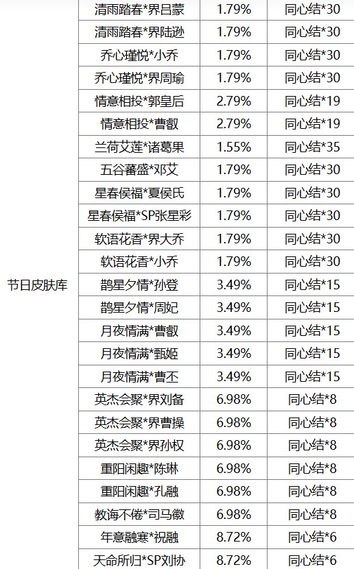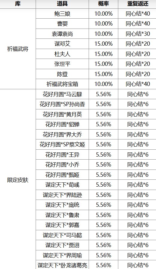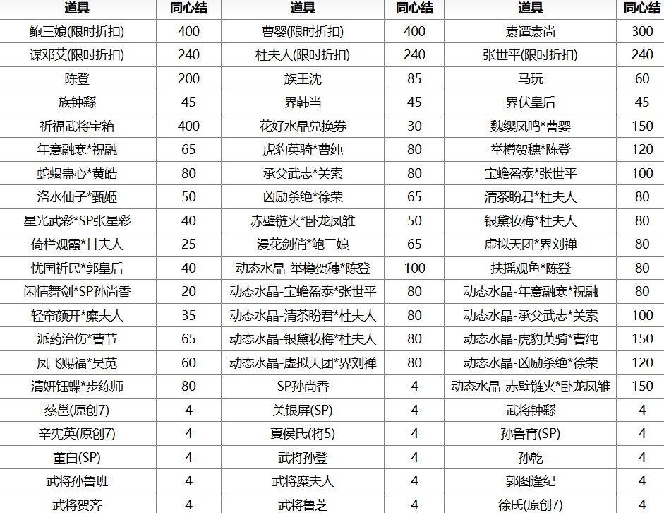 1、同心结可兑换奖励,若兑换奖励是在此次活动前已拥有的永久武将、皮肤、三国秀,则无法重复兑换。