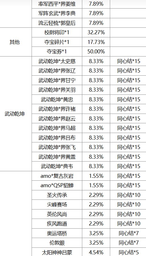 *本期随机幸运武将:周处、曹宪曹华、潘淑、关索、曹爽、卧龙凤雏、徐荣、张琪瑛、曹婴、鲍三娘、冯方女、曹纯;