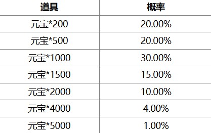 普通奖励库:朱砂*1概率70%,朱砂*3概率21%,朱砂*5概率7%,朱砂*10概率2%