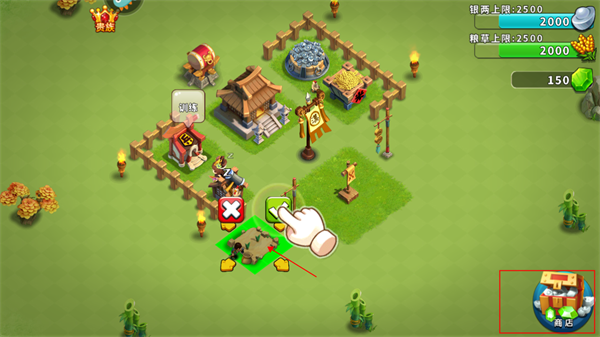 2、建设第一步:兵马未动,粮草先行,我们首先要有自己的农田和银矿!点击商店-资源-选择农田/银矿。