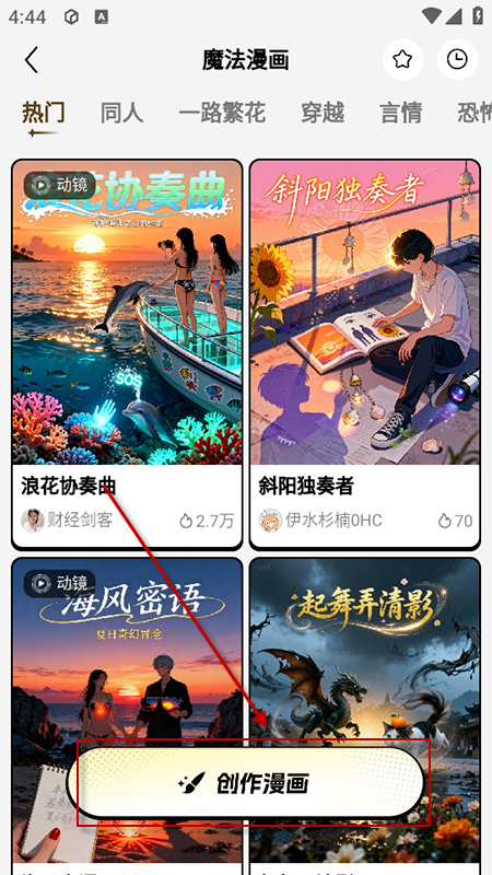 首页点击“魔法漫画”,上传一张照片;